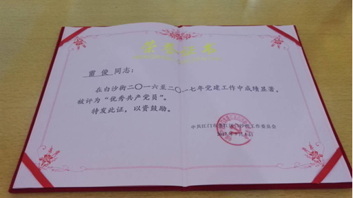 2017年7月14日,甘化公司党委党建年度工作成绩显著,被江门市蓬江区白沙街党工委授予“2016-2017年先进基层党组织”称号;另生物中心党支部书记雷俊被授予白沙街“2016-2017年优秀共产党员”称号。