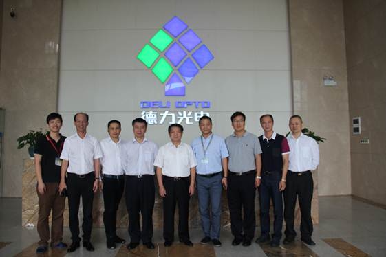 2015年11月20日上午,新余市市府领导一行到德力光电进行调研工作。新余市市府领导一行在德力光电总经理王非陪同下,先后参观了外延片、芯片生产车间及展厅,王非总经理进行了详细的讲解。最后,新余市市府领导一行与王非总经理在大堂亲切合影留念。